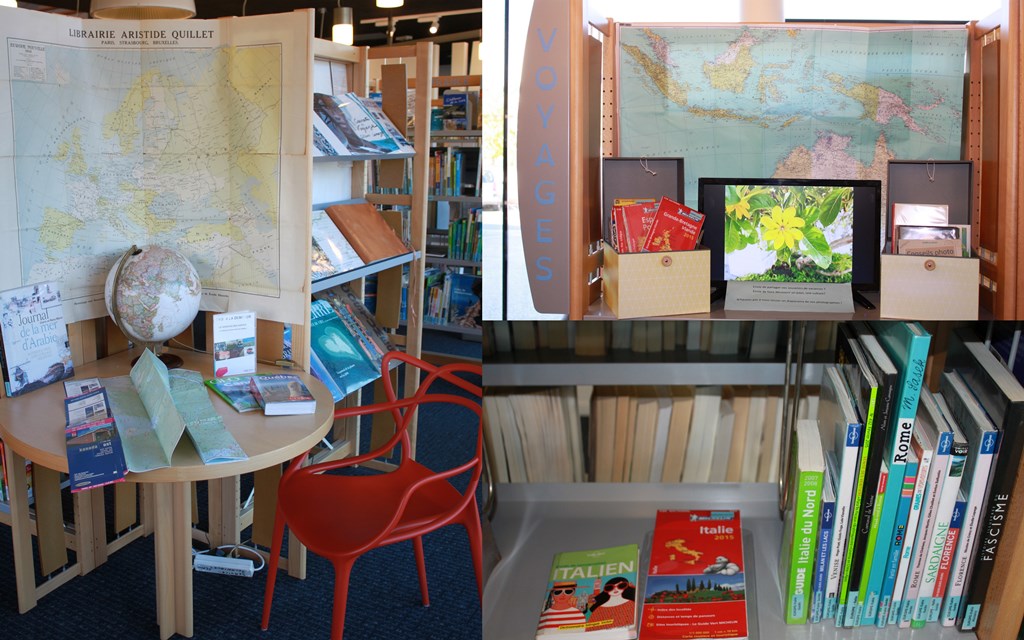 Du côté de Vezin-le-Coquet, l'espace documentaire dispose d'un fond "Peuples et Voyages", qui a pour but de proposer au public de quoi préparer son voyage mais aussi de se plonger un peu plus dans la culture du pays visité au retour du voyage.